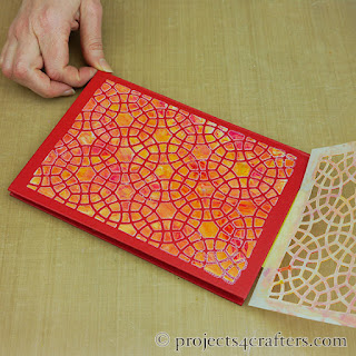 Top Tip: The more medium you have on the mask the more you will have to work the inks into it before scraping off the excess. This will generally mean that the colours are lighter and blended more.